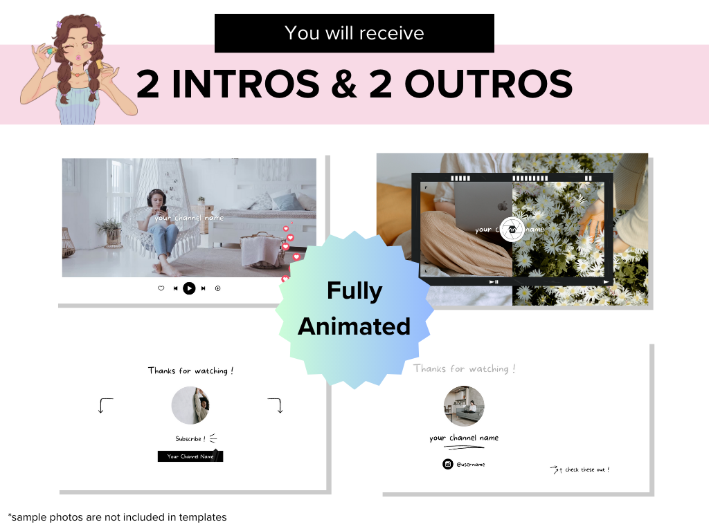 Youtube Branding Kit | Editable Intro, Banners, Thumbnails, Outro | Editable Canva Template | Minimalistic Cute